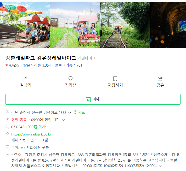 김유정역 레일바이크 예약은 네이버에서도 가능합니다.