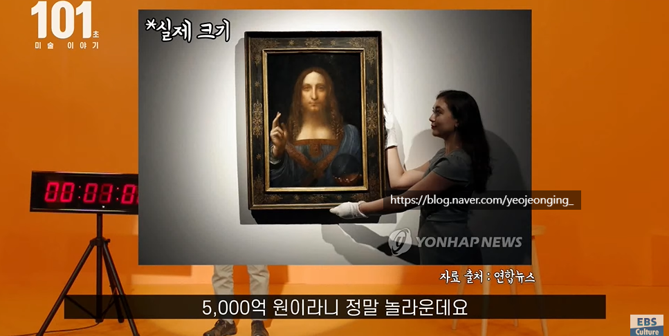 바로 오늘의 주인공은 레오나르도 다빈치의 '살바토르 문디'입니다. 레오나르도 다빈치의 그림 '살바토르 문디'는 세계에서 가장 비싼 그림입니다. 그것은 무려 5천억 원의 가치가 있습니다.
