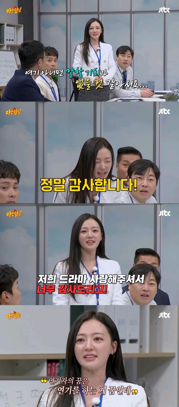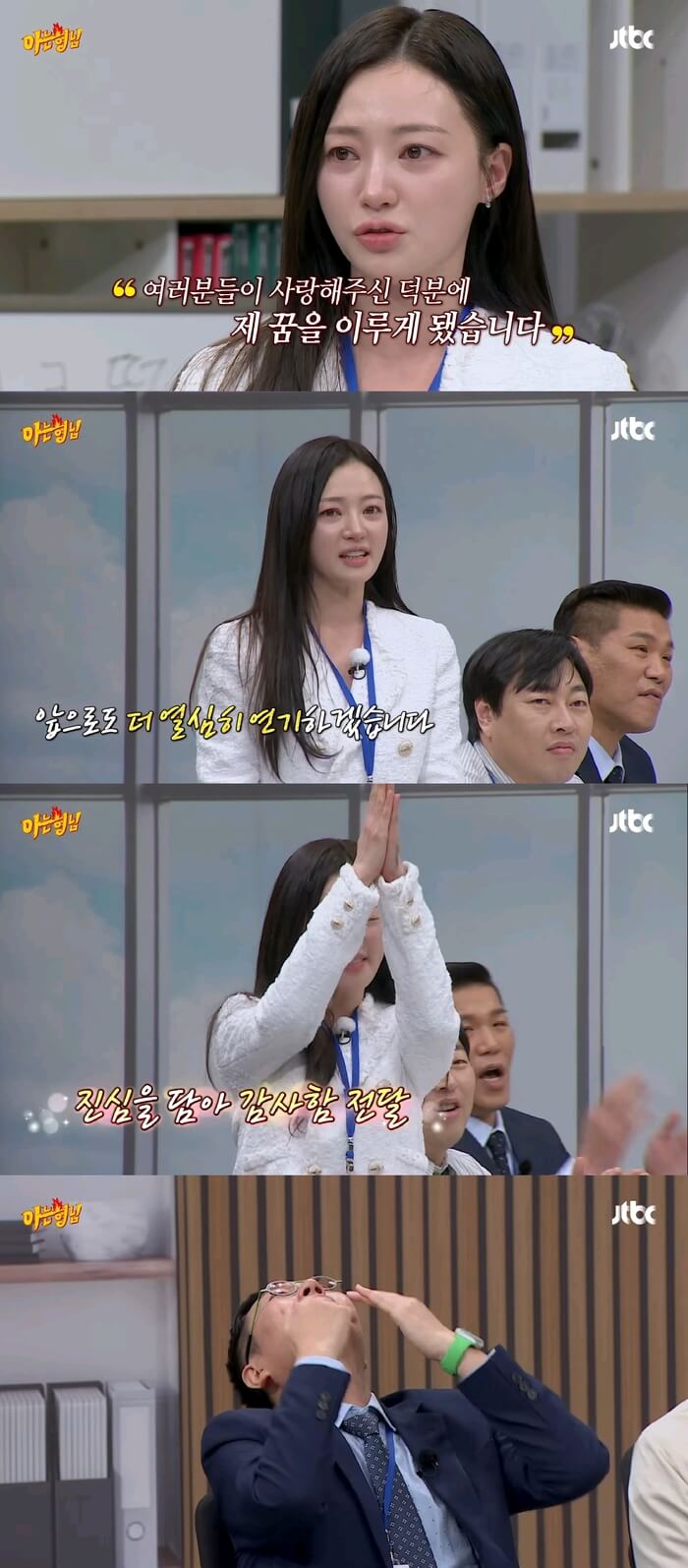 송하윤이 '아는 형님'에서 감사 인사를 전하며 눈물을 보였고, 온라인 커뮤니티에서 화제가 되었다.