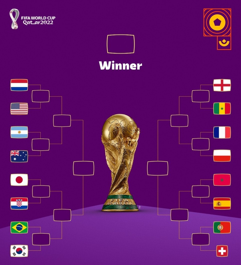 2022년 카타르 월드컵 16강 대진표가 확정되었다. 대한민국은 6% 되는 확률을 뚫고 16강 진출하였다.