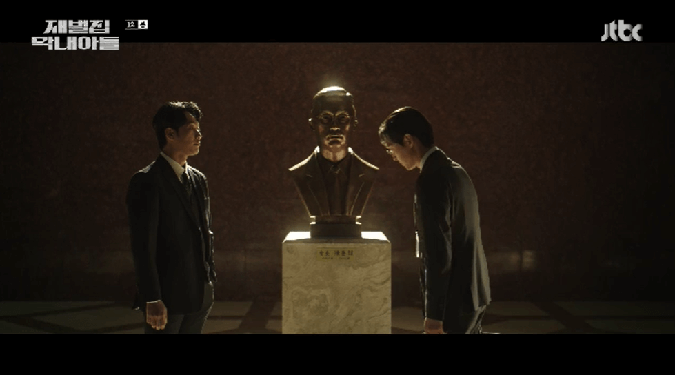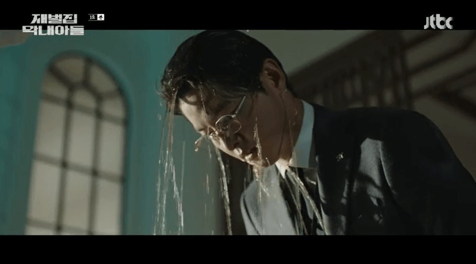 한쪽에서는 개막식이 열리고 있다. 부회장은 골프채를 계속 휘두르며 집안을 난장판을 만든다. 이제 곧 송중기 씨가 들어온다. 송중기는 이 부회장이 휘두른 골프채에 맞아 피를 흘리고 있다. 송중기가 일어나 부회장을 설득한다. 부회장이 송중기에게 물을 붓는다. 그런데도 송중기는 입을 굳게 다물고 고개를 숙여 부회장에게 감사를 표한다.