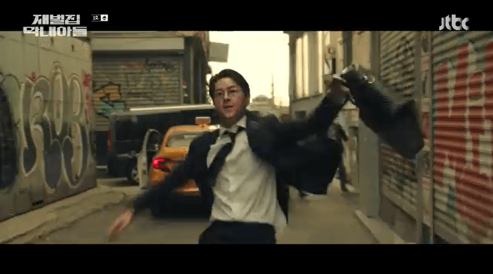 그리고 첫 장면이 다시 나온다. 송중기는 사인과 함께 6억 달러의 송금을 받게 된다. 그리고 송중기는 공항으로 가기 위해 택시를 탑니다. 하지만 택시기사가 지름길이라며 송중기를 이상한 골목으로 데리고 갑니다.