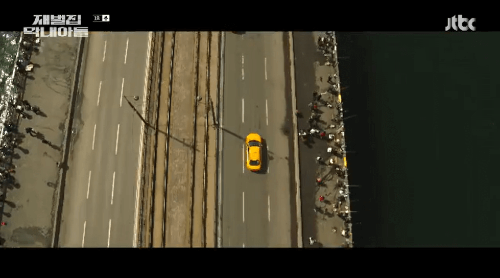잠시 후 누군가가 택시를 막아섭니다. 그리고 송중기는 이내 쫓기게 됩니다. 그리고 그들은 간신히 탈출한다.