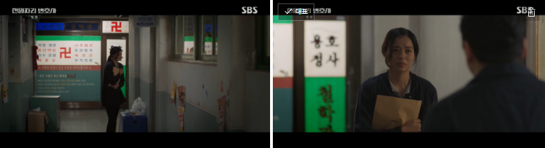 그리고 천변(남궁민)은 검사가 돌아갈 방법을 알고 있다고 감장에 들어가지 않는 방법이 있다고 했죠. 그러고는 사채업자에게 변호사를 선임해야 한다며, 본인(남궁민)을 변호사라고 소개합니다.