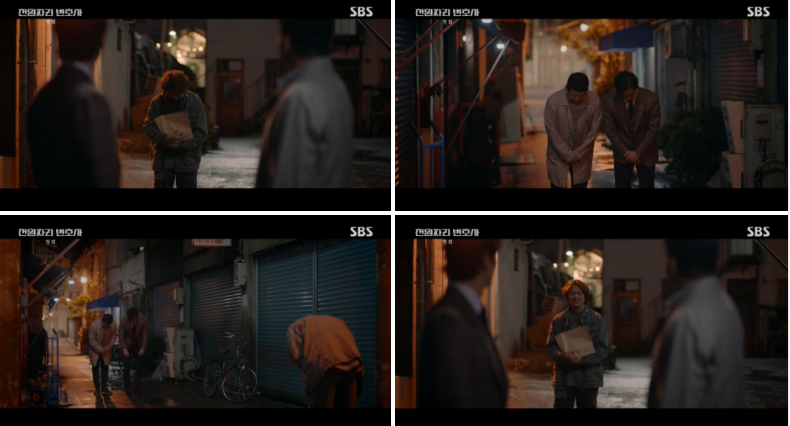 세탁소로 가는 천지훈(남궁민)그리고 세탁소 사장님을 사무장(박진우)이라고 부릅니다.