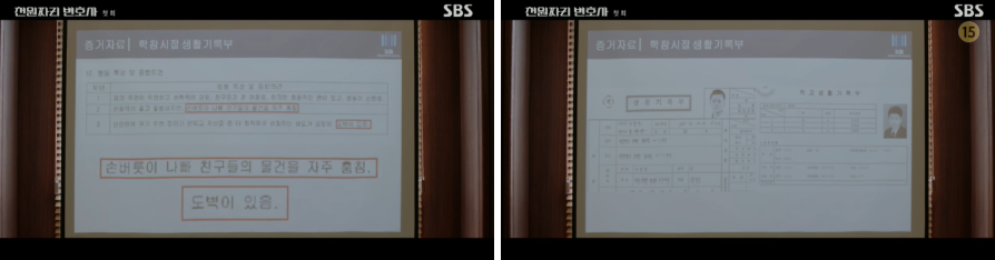 그리고 검사는 변론준비 기한 내에 제출하고 합의해야 하는 게 원칙이라고 백 마리 검사는 증거물을 거부합니다. 그리고 부득이한 사유가 있었고 합의할 수 없는 증거물이라고 천지훈 변호사는 말합니다. 부득이한 사유가 뭡니까라고 묻자, 허락해 주시면 말씀하겠다고 말합니다.