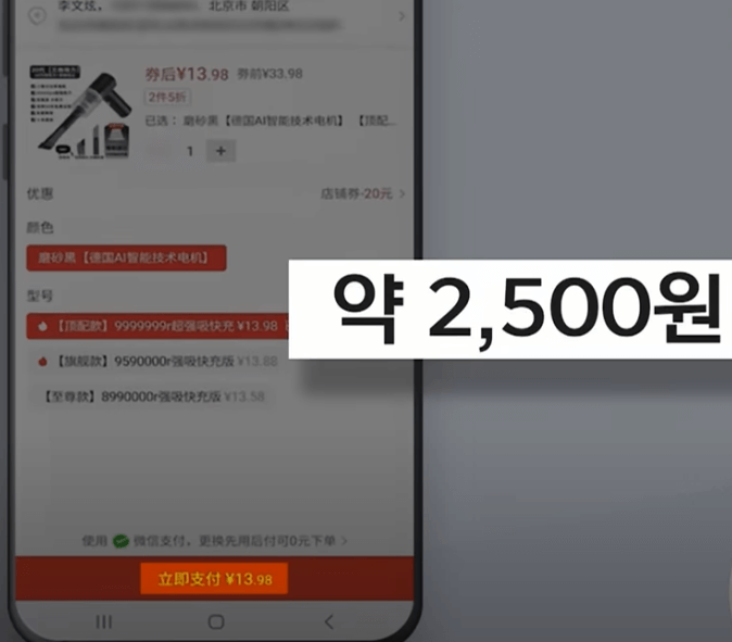 중국의 쇼핑 테무(핀더더)에서 차량용 소형 청소기를 구매를 해보았습니다. 최고 옵션을 선택해도 13.98위안 우리나라 돈으로 2500원 입니다.