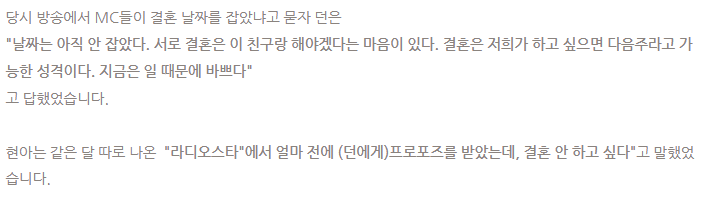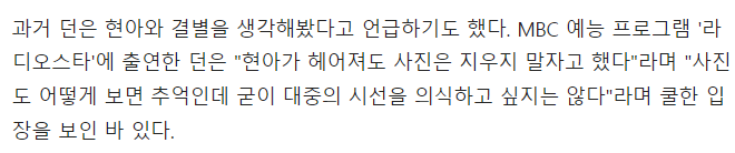 현재 현아와 이단의 이별로 인해 많은 사람의 관심이 쏠리고 있는 가운데 넉 달 전에 현 아가 방송에 출연하여서 한 발언이 다시 화제가 되고 있습니다. 가수 현아와 돈이 교제 6년 만에 결별한