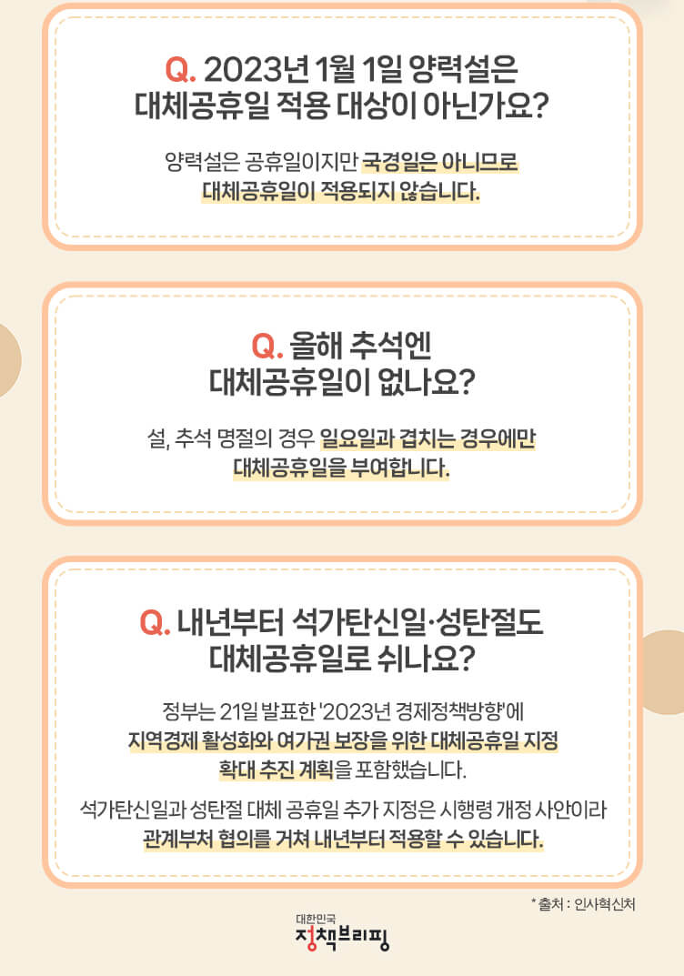 Q. 2023년 1월 1일은 대체휴일이 아닌가요?